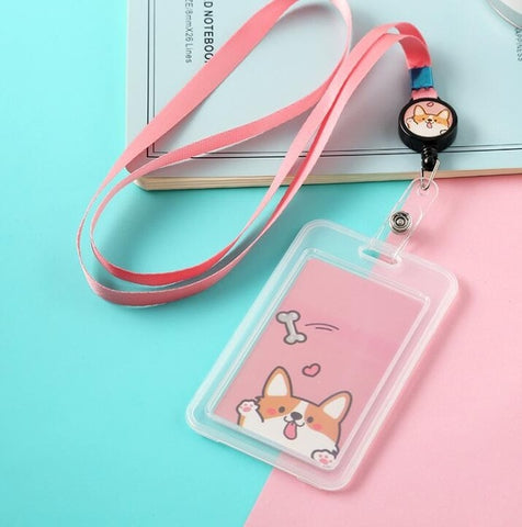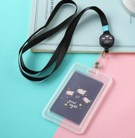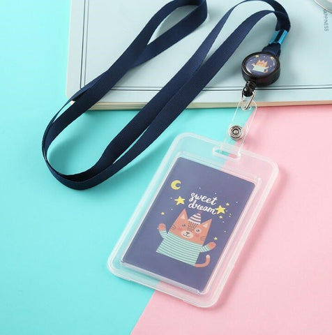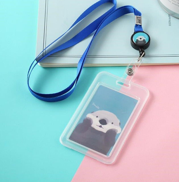 Cartoon Cute Transparent ID Badge Case Card Holder with Lanyard Animals Bank Credit Card Holders ID Badge Holders Accessories